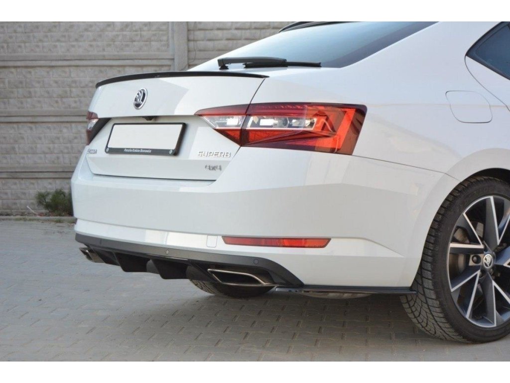 Maxton Design vložka zadního nárazníku pro vozidlo Škoda Superb Mk3, Mk3 FL . Povrchová úprava spoileru carbon-Look.