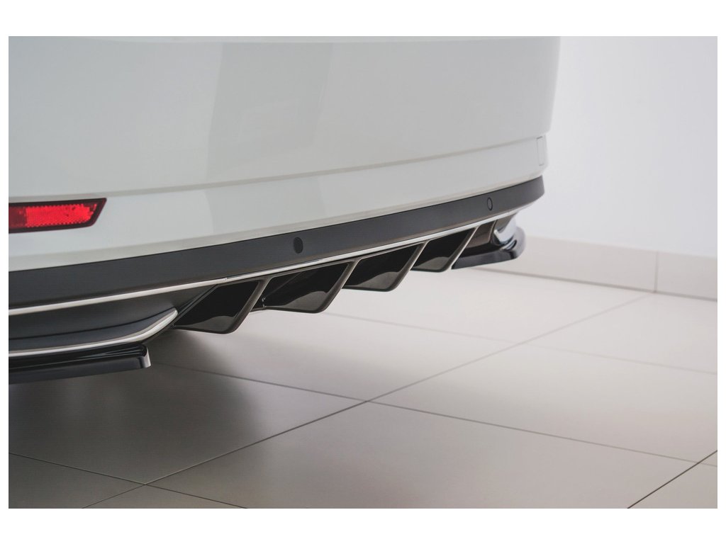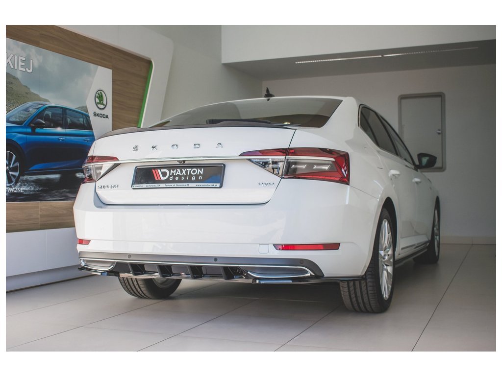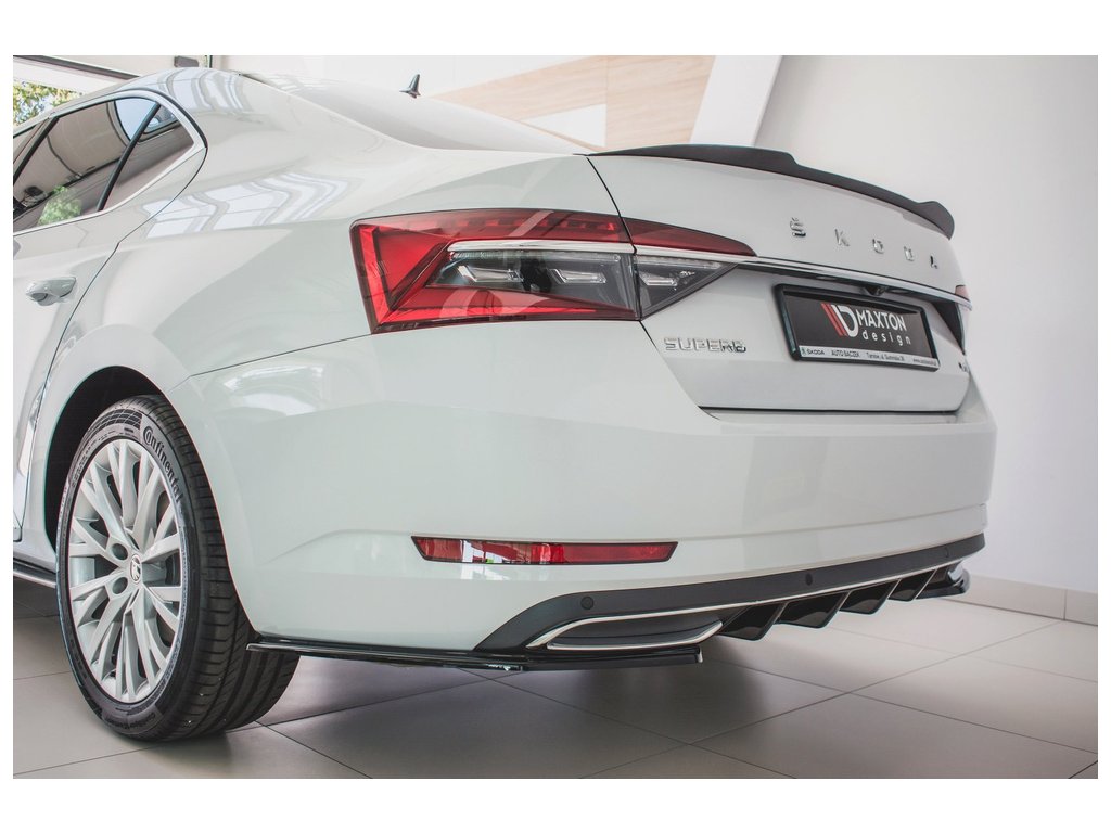 Maxton Design vložka zadního nárazníku pro vozidlo Škoda Superb Mk3 FL Facelift. Povrchová úprava spoileru černý lesklý plast ABS.