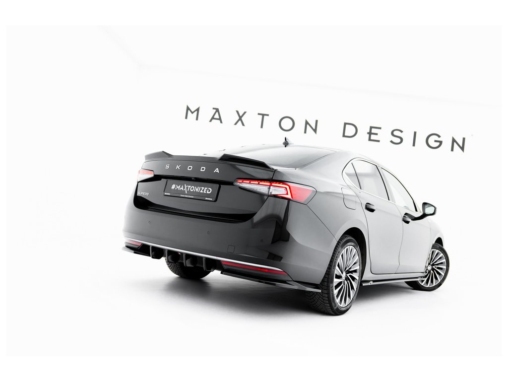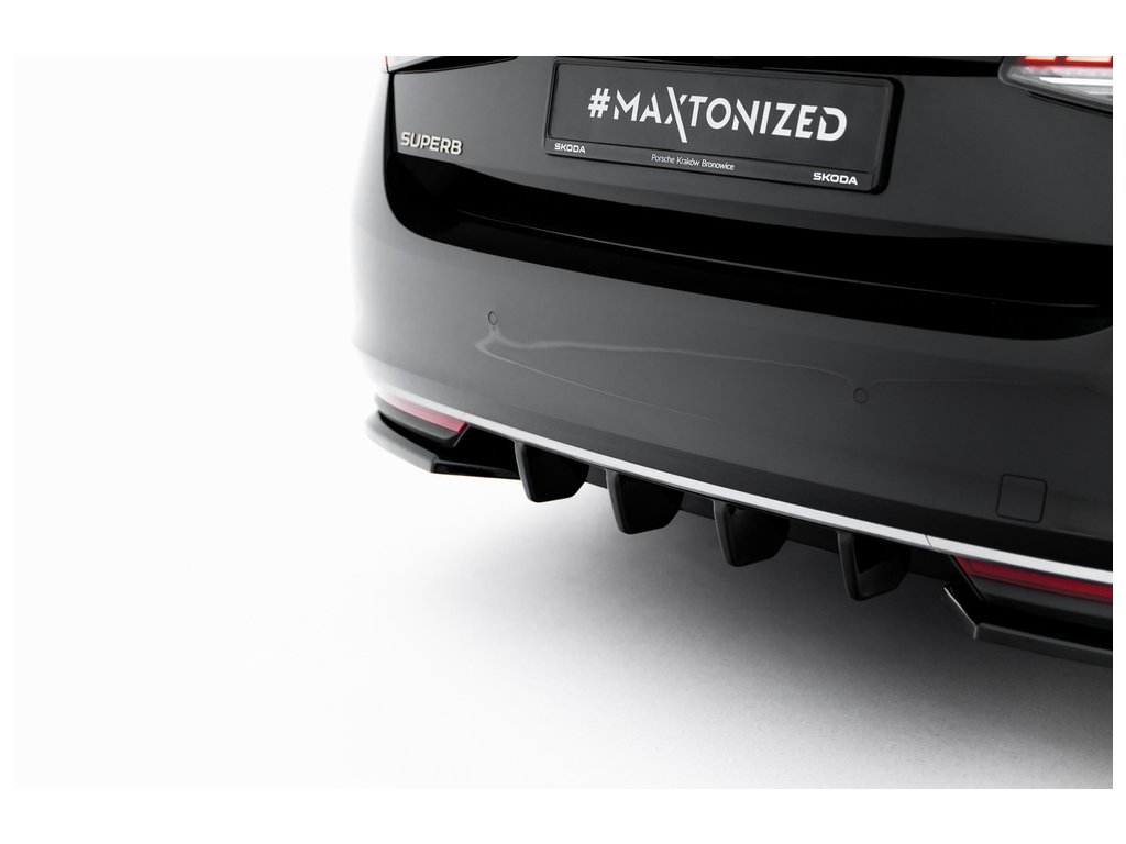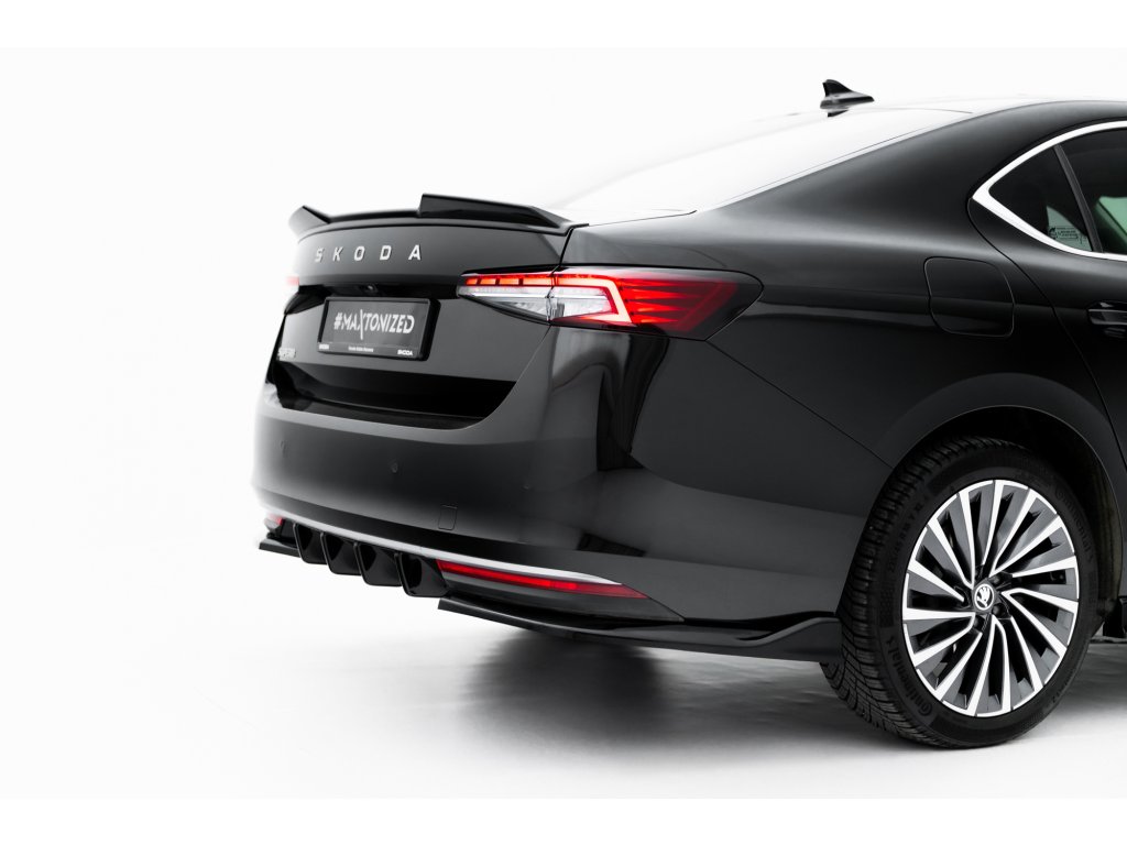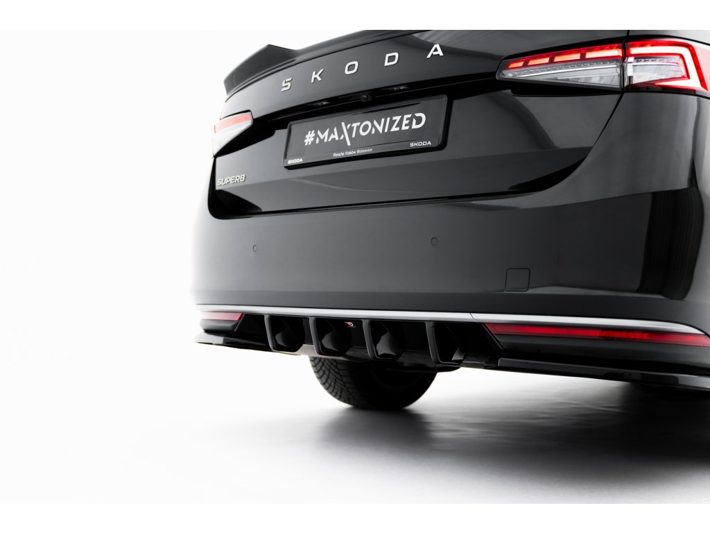 Maxton Design vložka zadního nárazníku pro vozidlo Škoda Superb Mk4 . Povrchová úprava spoileru černý lesklý plast ABS.