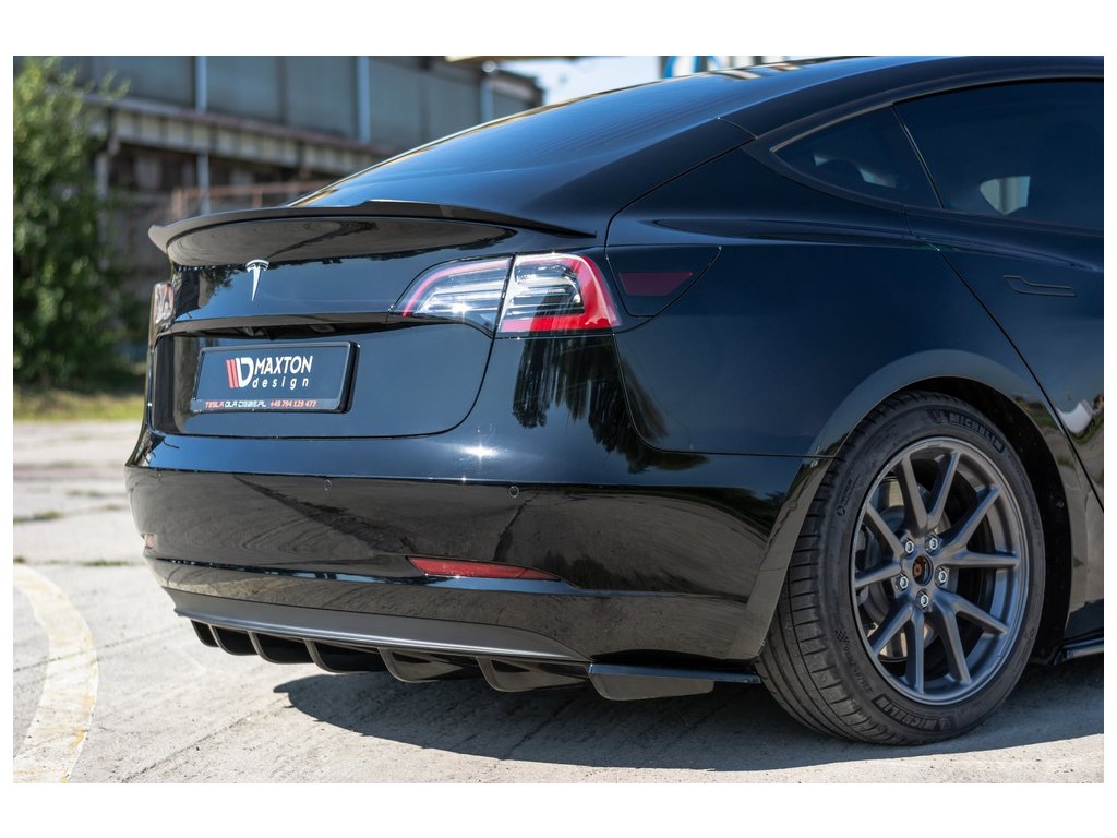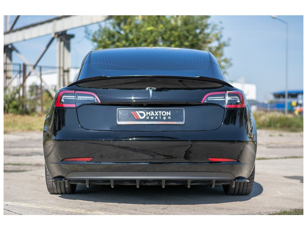 Maxton Design vložka zadního nárazníku pro vozidlo Tesla Model 3 Mk1 . Povrchová úprava spoileru černý lesklý plast ABS.