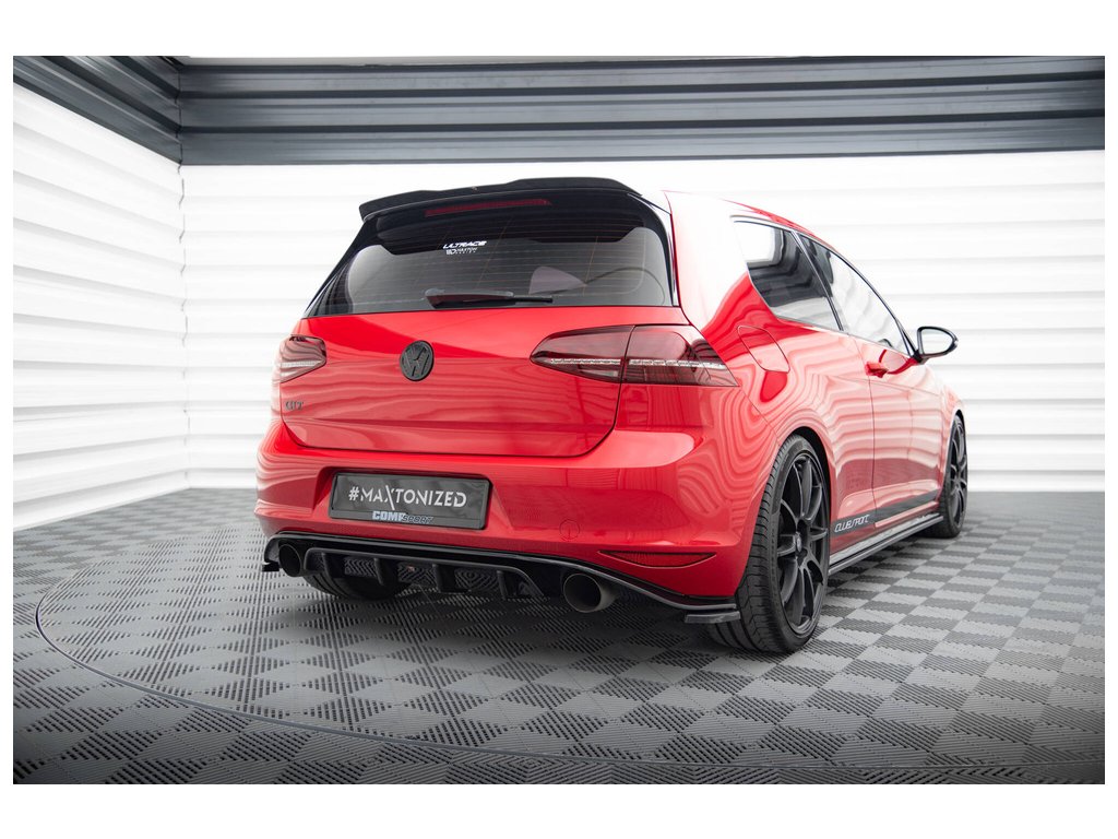 Maxton Design vložka zadního nárazníku pro vozidlo Volkswagen Golf GTI Mk7 . Povrchová úprava spoileru černý lesklý plast ABS.