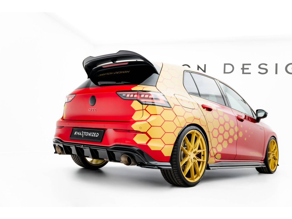 Maxton Design vložka zadního nárazníku pro vozidlo Volkswagen Golf GTI Mk8 Facelift . Povrchová úprava spoileru černý lesklý plast ABS.