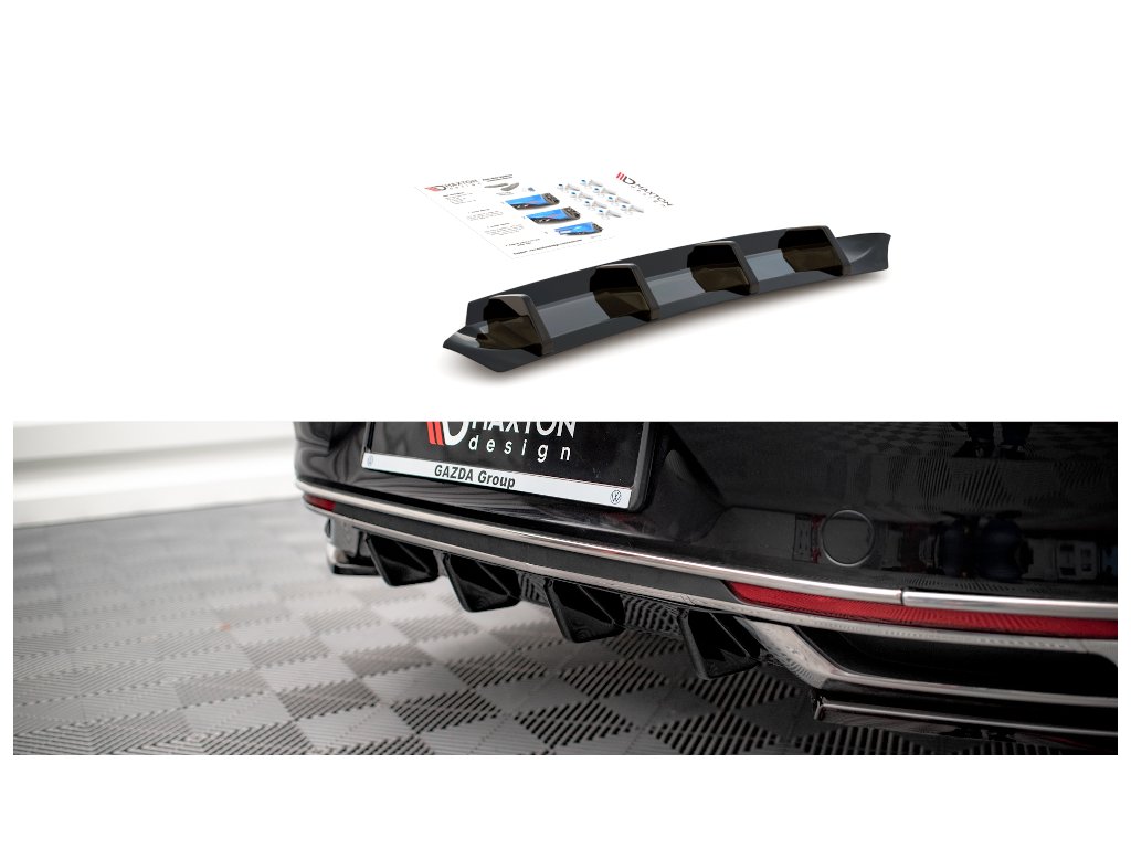 Maxton Design vložka zadního nárazníku pro vozidlo Volkswagen Passat Mk8 (B8) Facelift . Povrchová úprava spoileru carbon-Look.