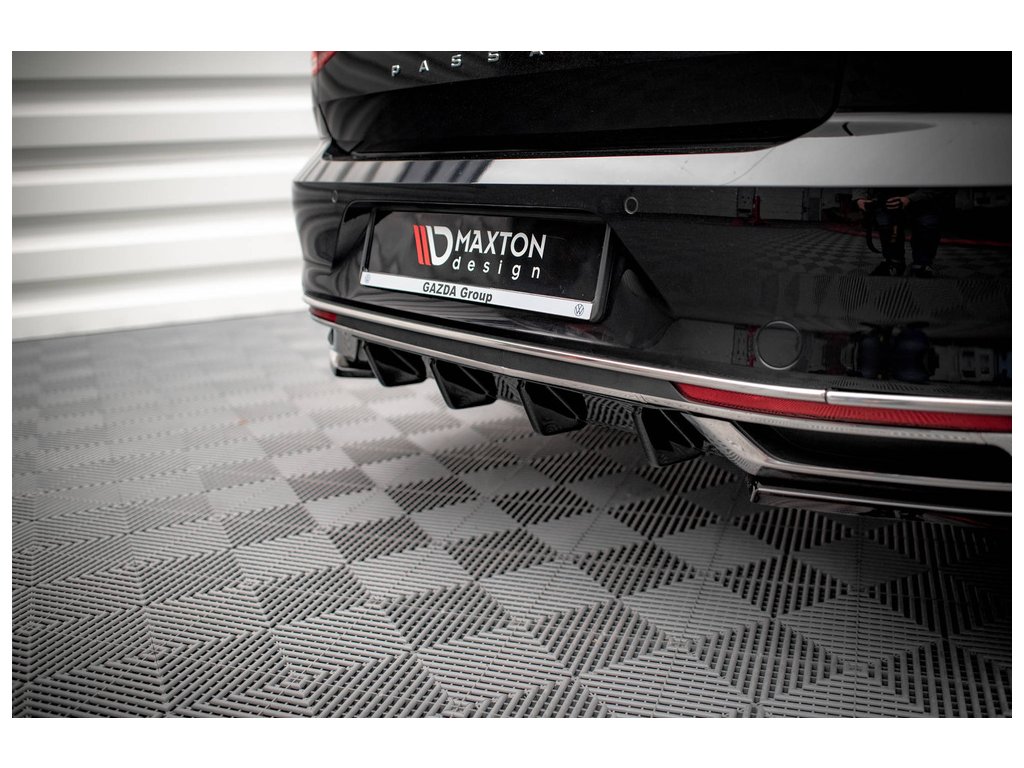 Difuzor zadního nárazníku Volkswagen Passat B8 Facelift, povrchová úprava černý lesklý plast ABS.