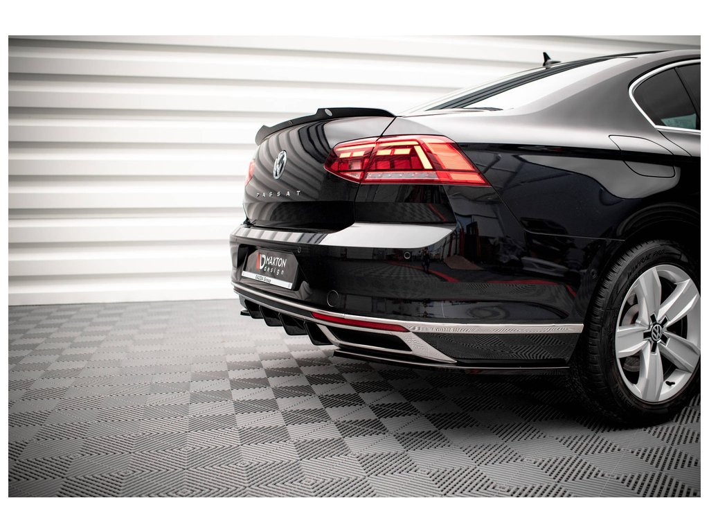 Maxton Design vložka zadního nárazníku pro vozidlo Volkswagen Passat Mk8 (B8) Facelift . Povrchová úprava spoileru černý lesklý plast ABS.