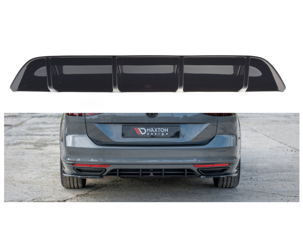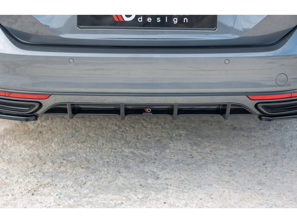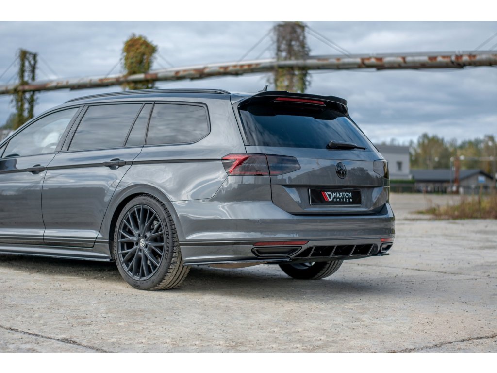 Maxton Design vložka zadního nárazníku pro vozidlo Volkswagen Passat Mk8 (B8) . Povrchová úprava spoileru carbon-Look.