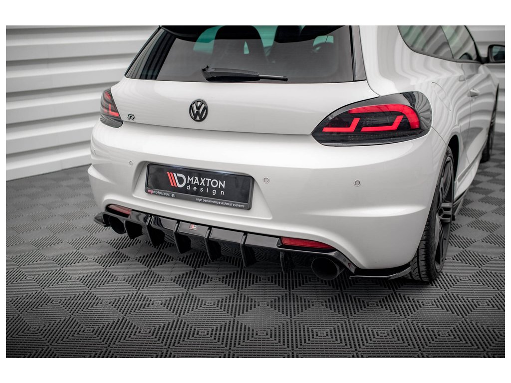 Maxton Design vložka zadního nárazníku pro vozidlo Volkswagen Scirocco R Mk3 . Povrchová úprava spoileru černý lesklý plast ABS.