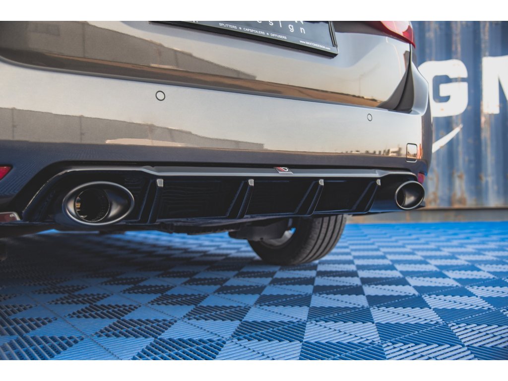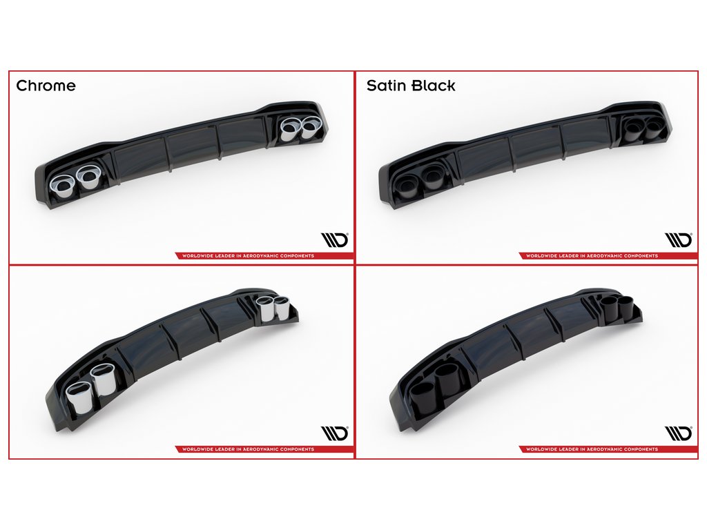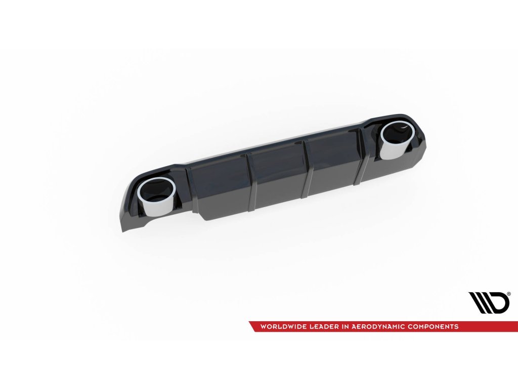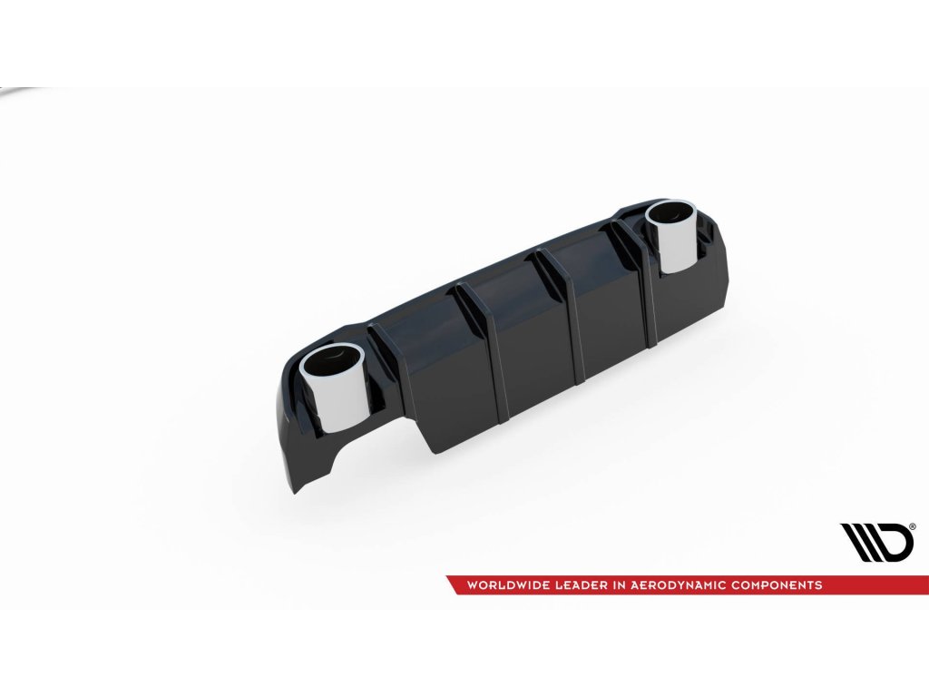 Maxton Design vložka zadního nárazníku s chromovými imitacemi koncovek výfuku pro vozidlo Peugeot 308 Mk2 . Povrchová úprava spoileru černý lesklý plast ABS.