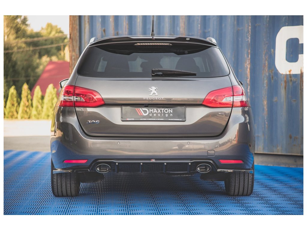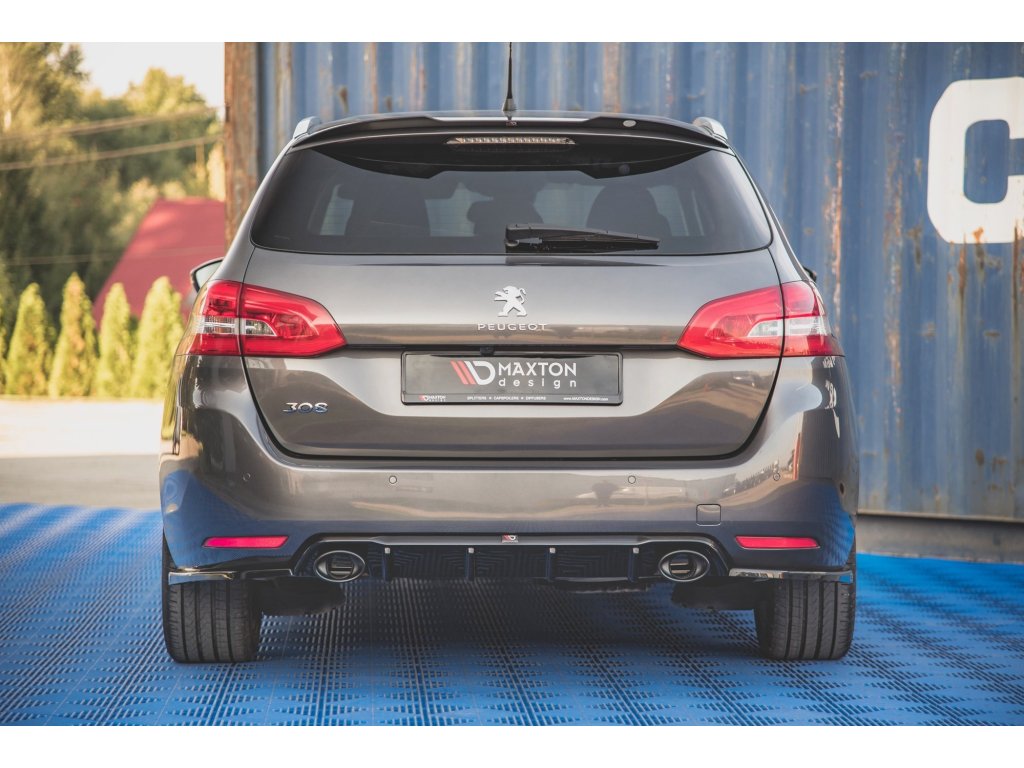 Zadní difuzor s imitacemi koncovek výfuku pro Peugeot 308 SW Mk2 facelift, povrchová úprava černý lesklý plast ABS.
