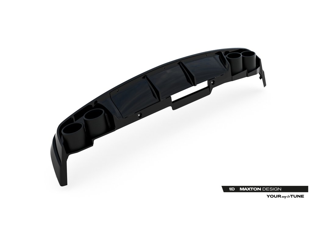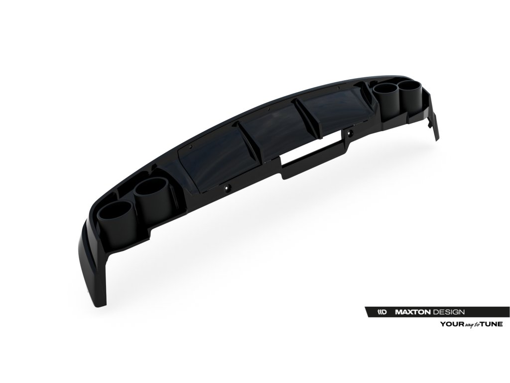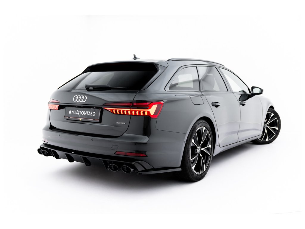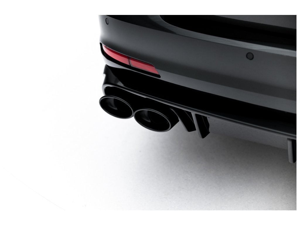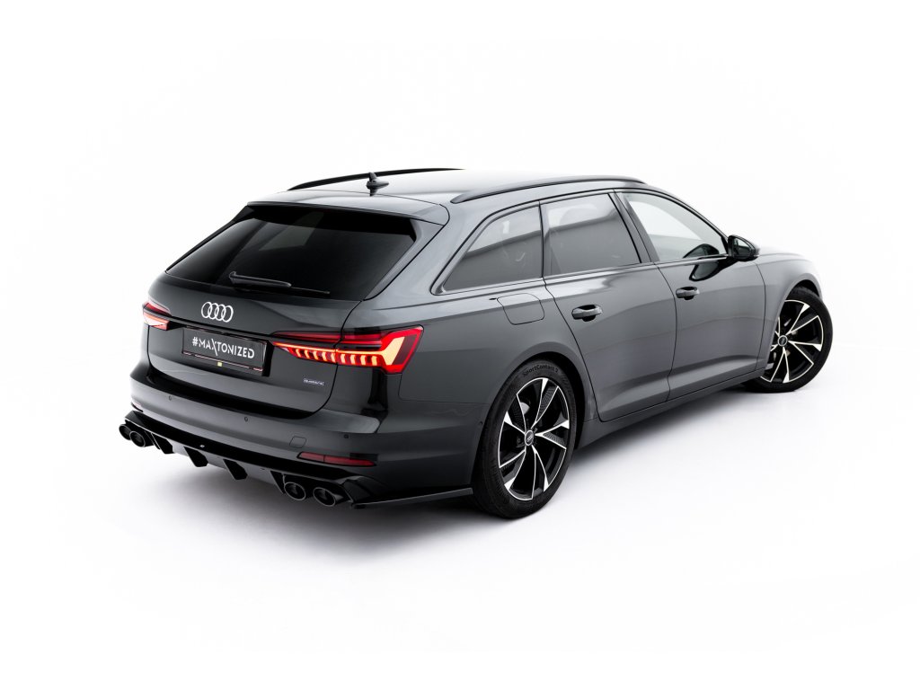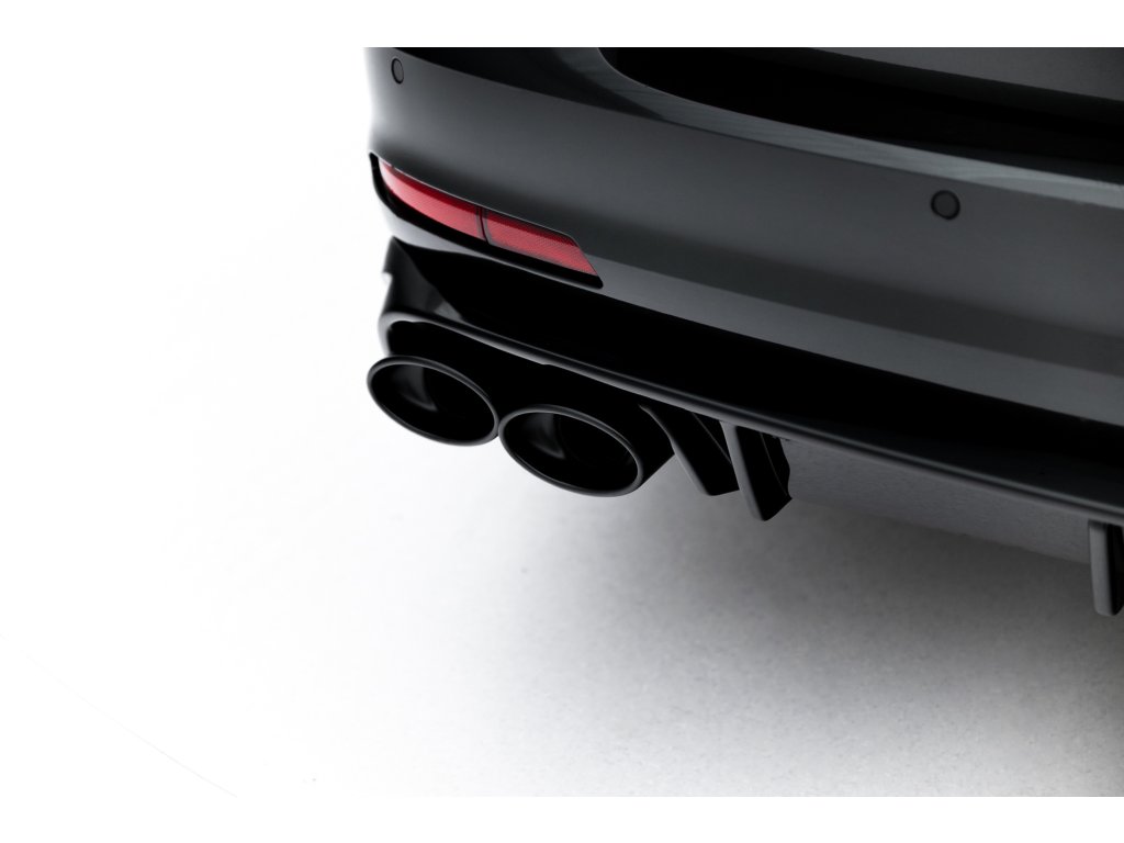 Maxton Design vložka zadního nárazníku s imitacemi koncovek výfuku pro vozidlo Audi A6 C8 . Povrchová úprava spoileru černý lesklý plast ABS.