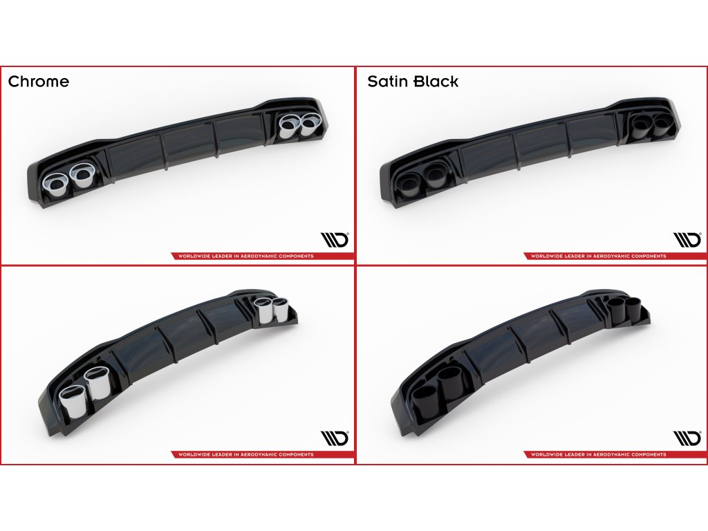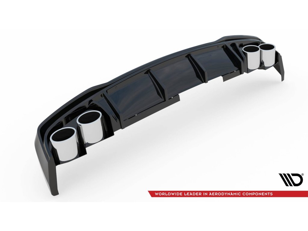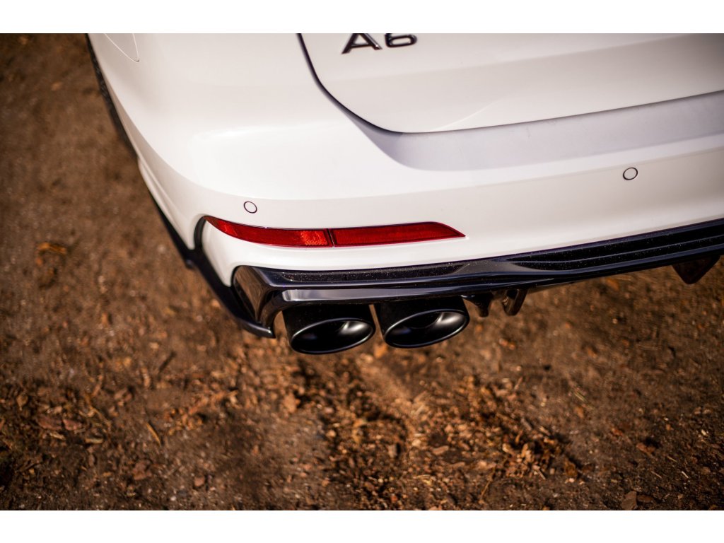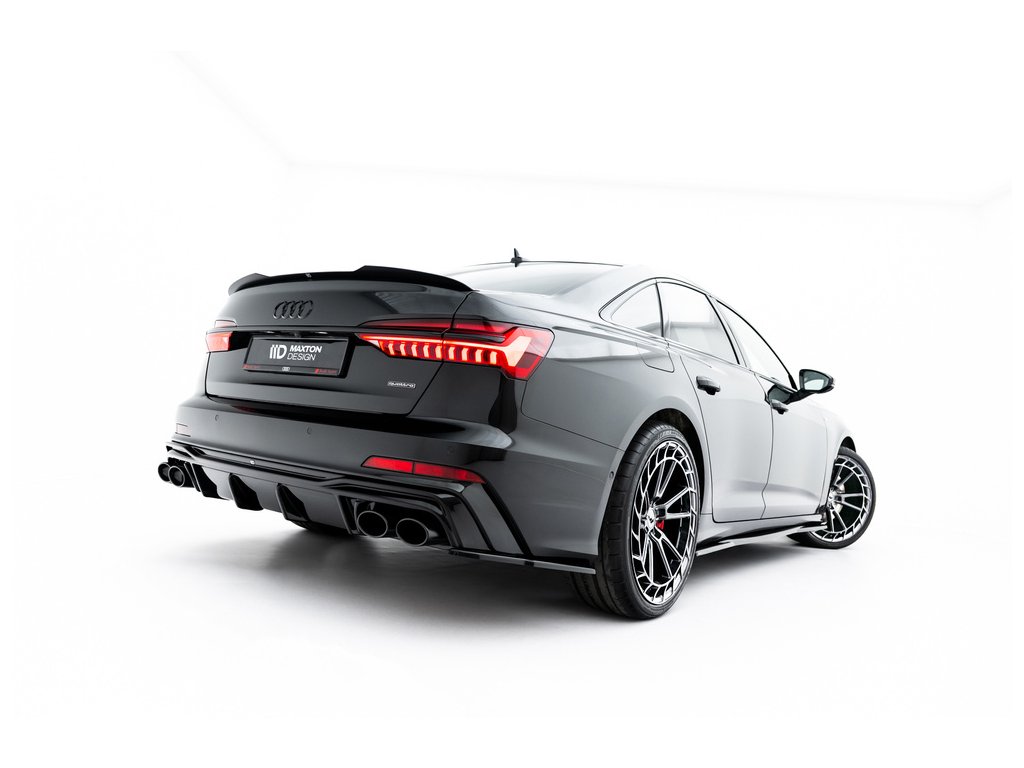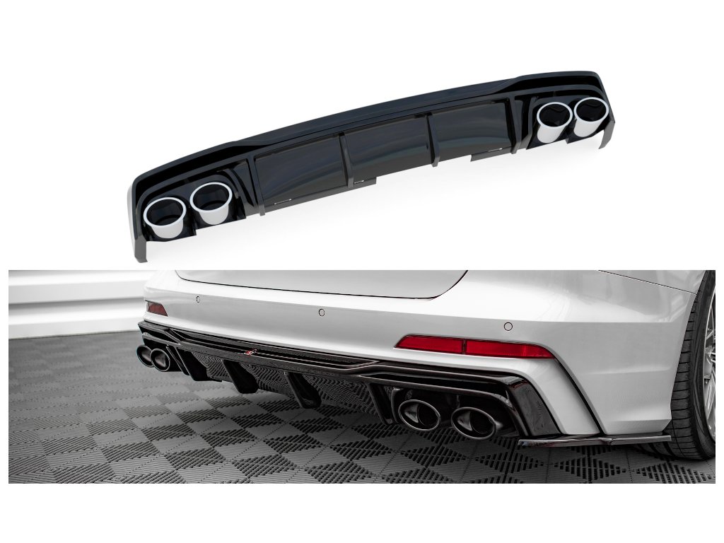 Maxton Design vložka zadního nárazníku s imitacemi koncovek výfuku pro vozidlo Audi S6 C8 . Povrchová úprava spoileru černý lesklý plast ABS.