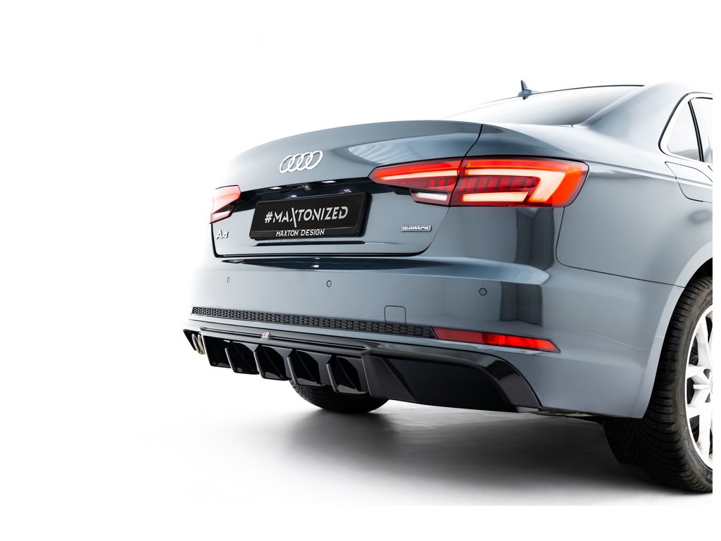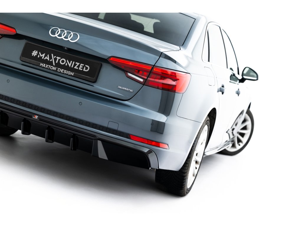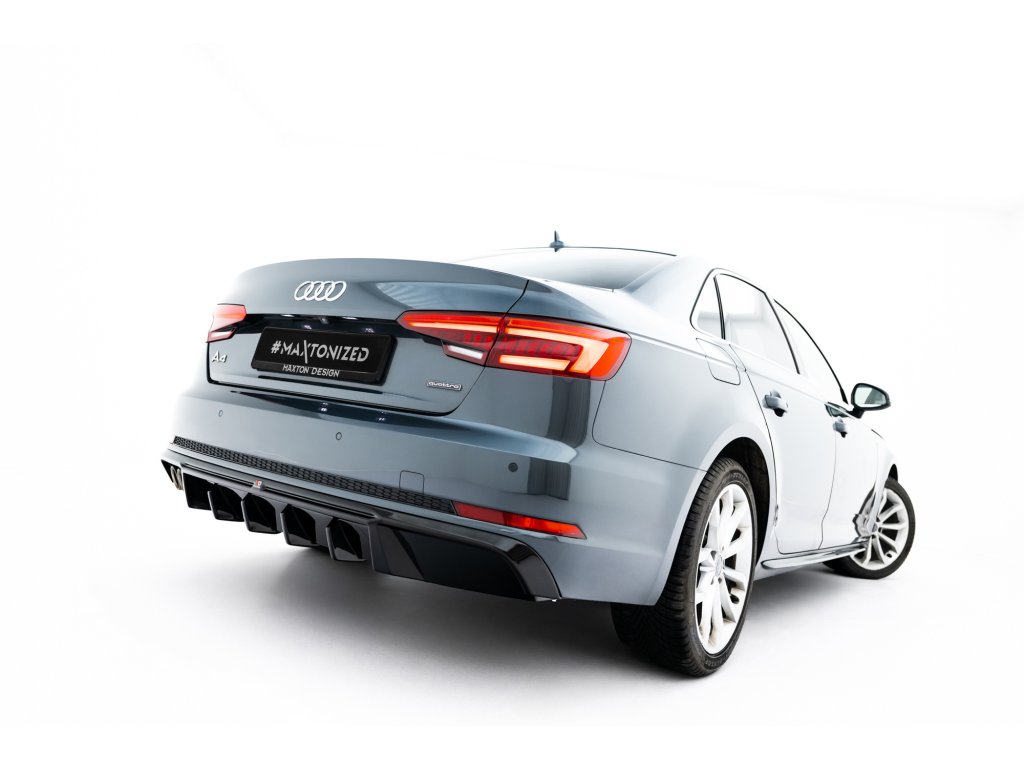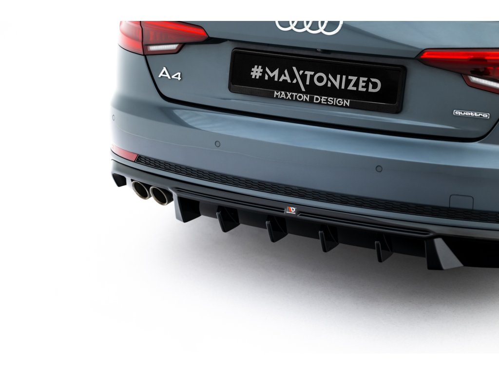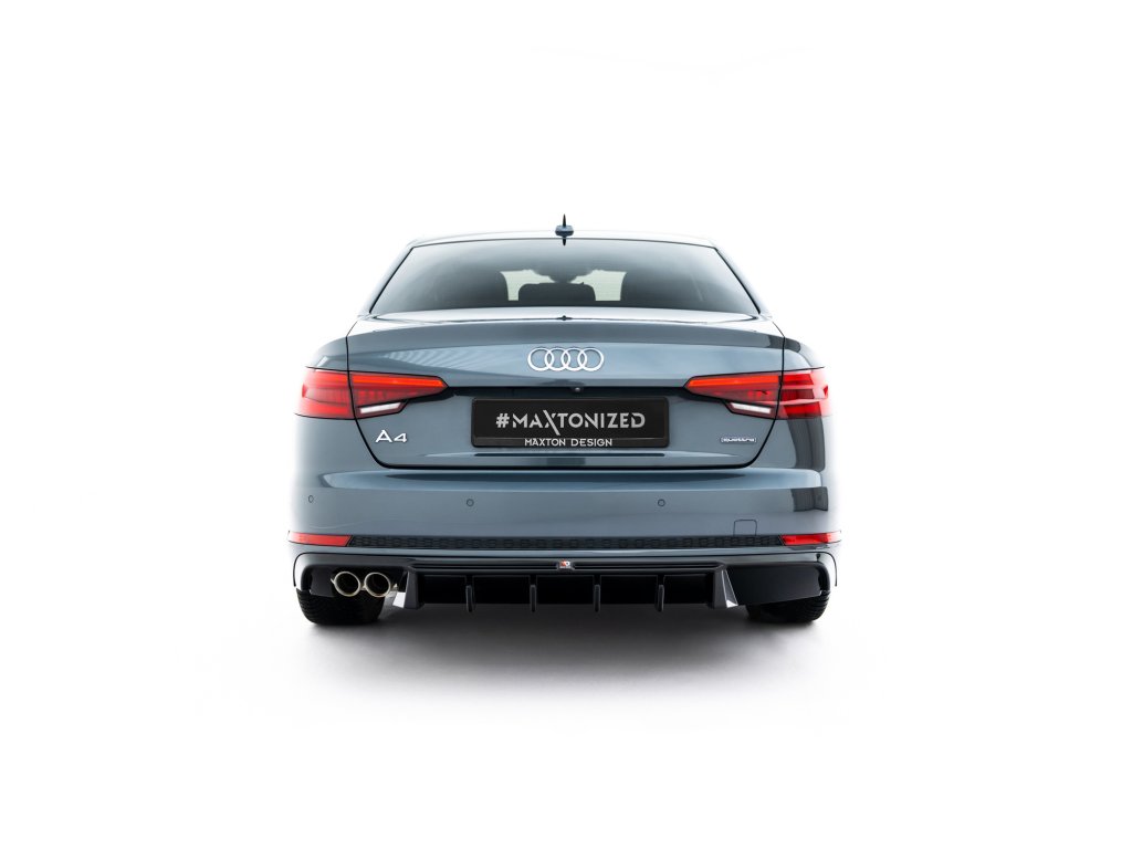 Maxton Design vložka zadního nárazníku ver.2 pro vozidlo Audi A4 B9 . Povrchová úprava spoileru černý lesklý plast ABS.