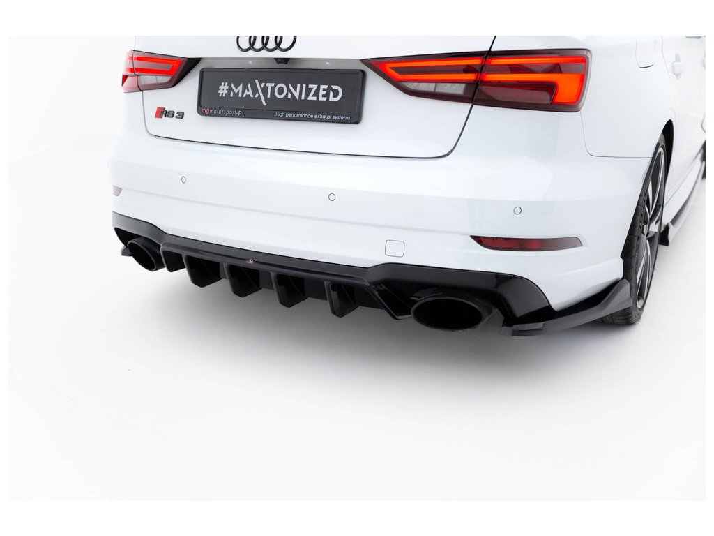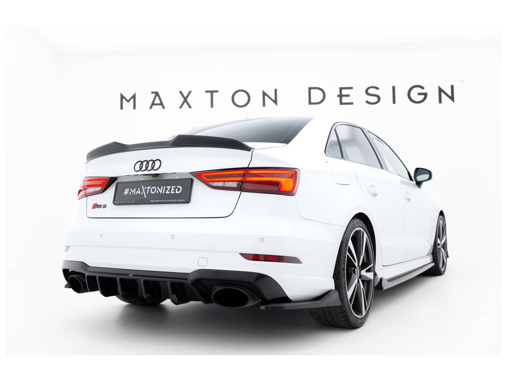 Maxton Design vložka zadního nárazníku ver.2 pro vozidlo Audi RS3 8V FL . Povrchová úprava spoileru černý lesklý plast ABS.