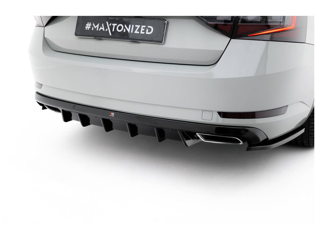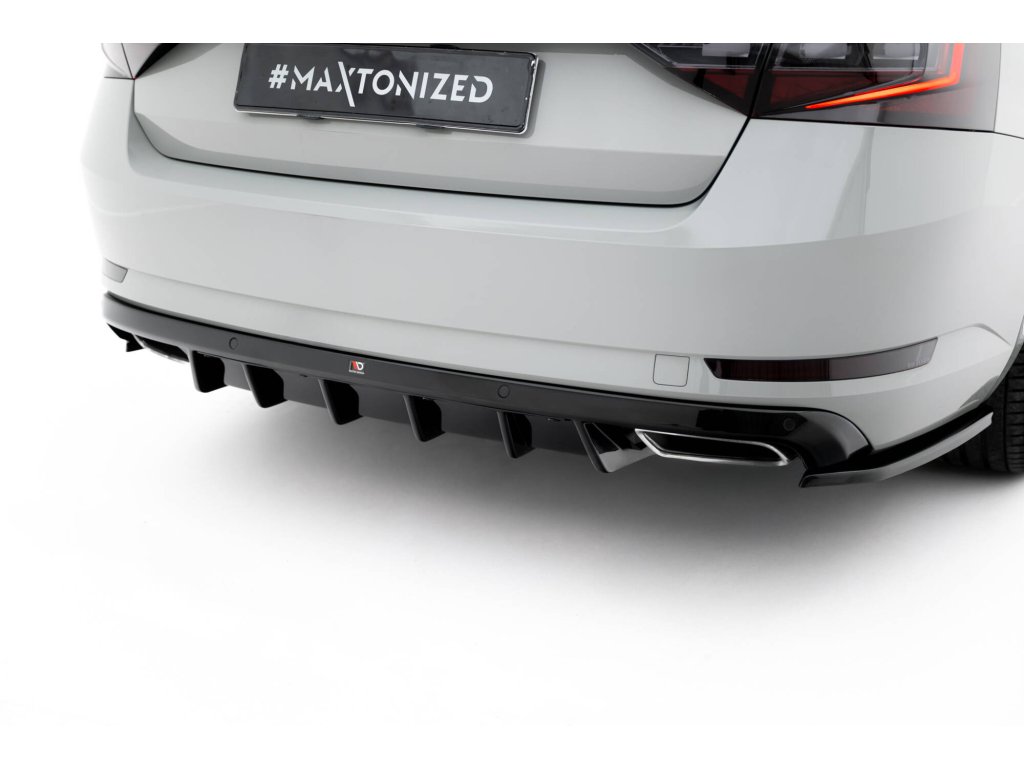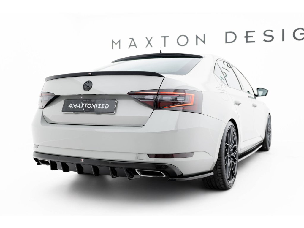 Maxton Design vložka zadního nárazníku ver.2 pro vozidlo Škoda Superb Mk3 . Povrchová úprava spoileru černý lesklý plast ABS.