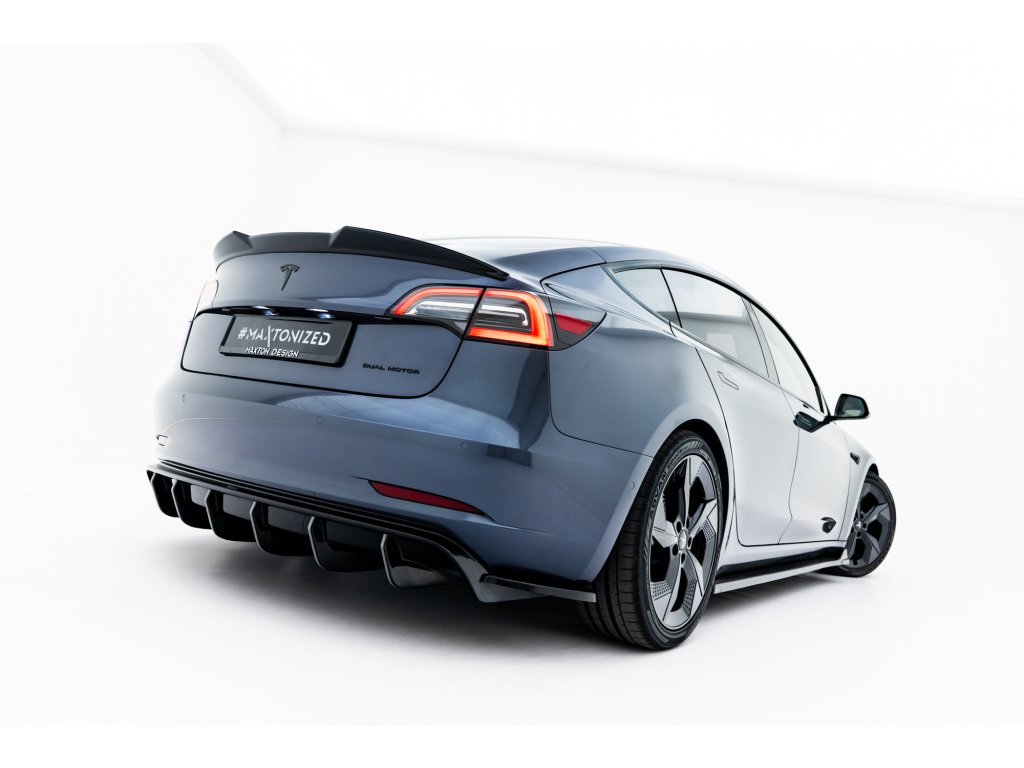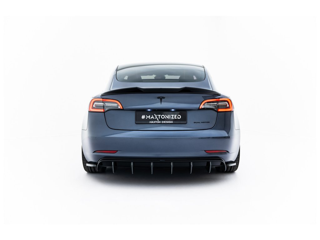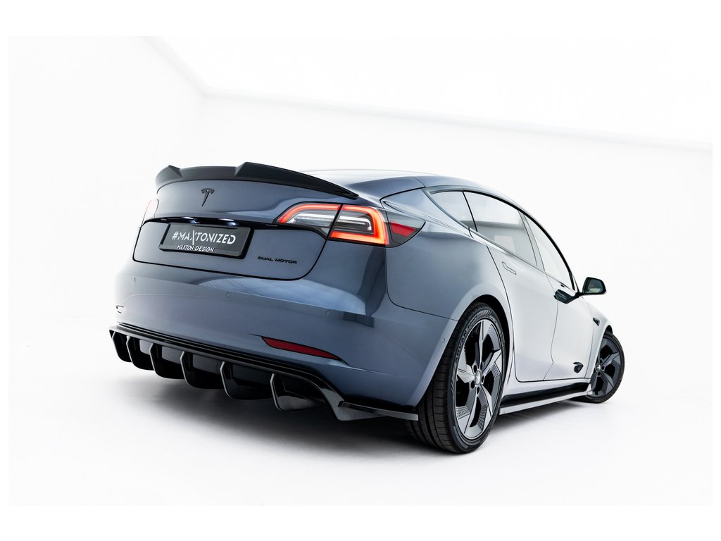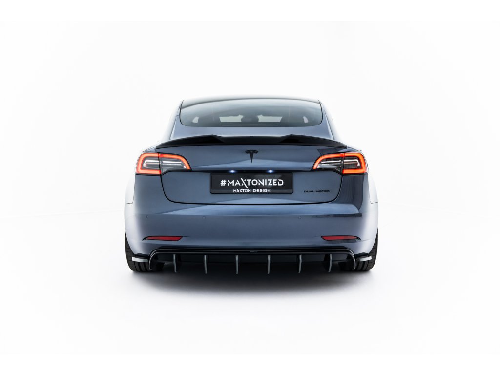 Maxton Design vložka zadního nárazníku ver.2 pro vozidlo Tesla Model 3 Mk1 . Povrchová úprava spoileru černý lesklý plast ABS.