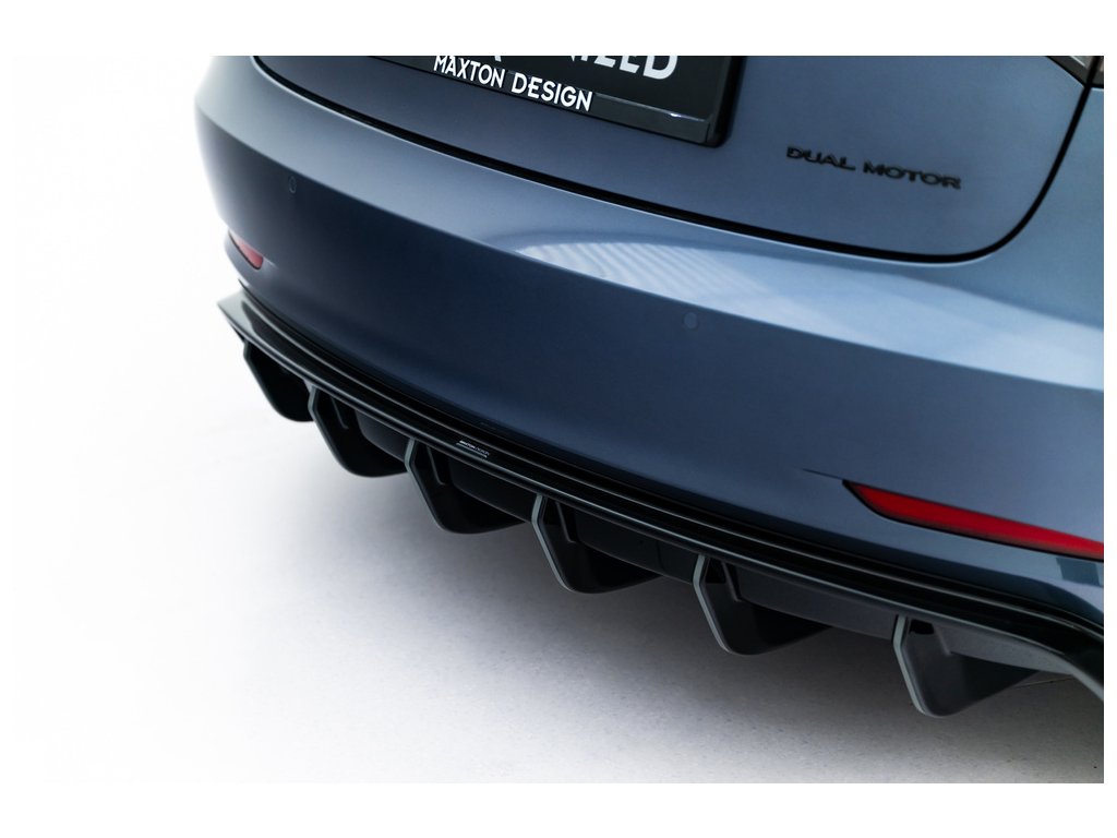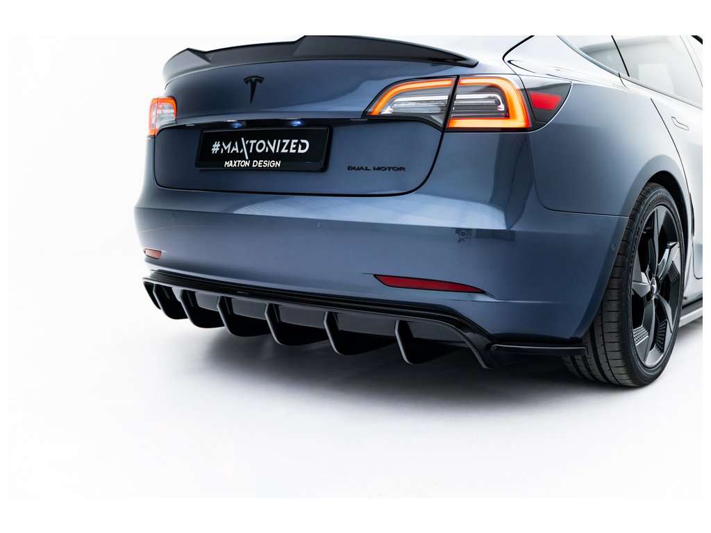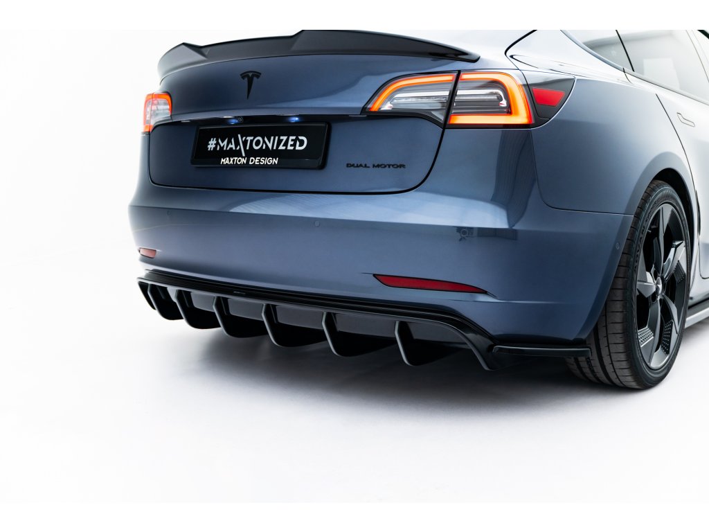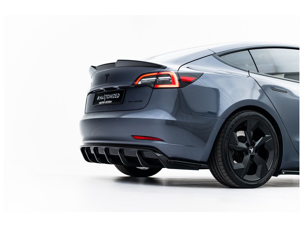 Maxton Design vložka zadního nárazníku ver.2 pro vozidlo Tesla Model 3 Mk1 . Povrchová úprava spoileru černý lesklý plast ABS.