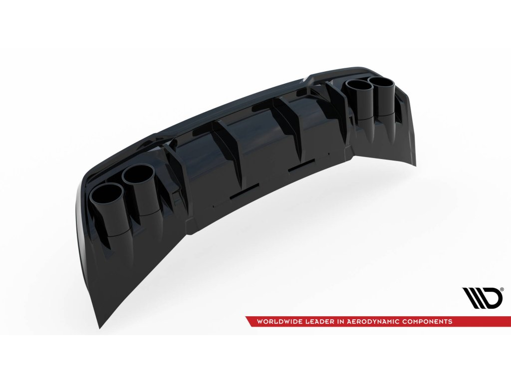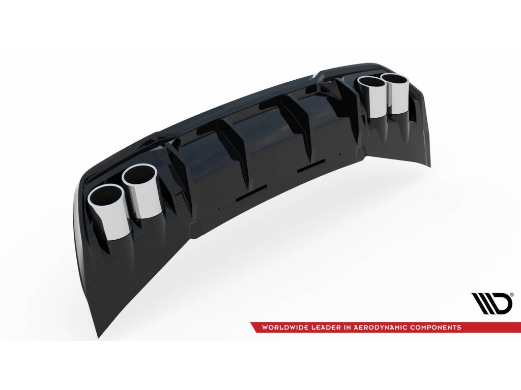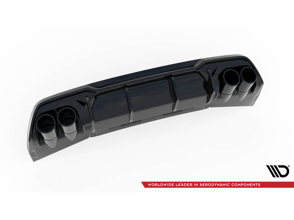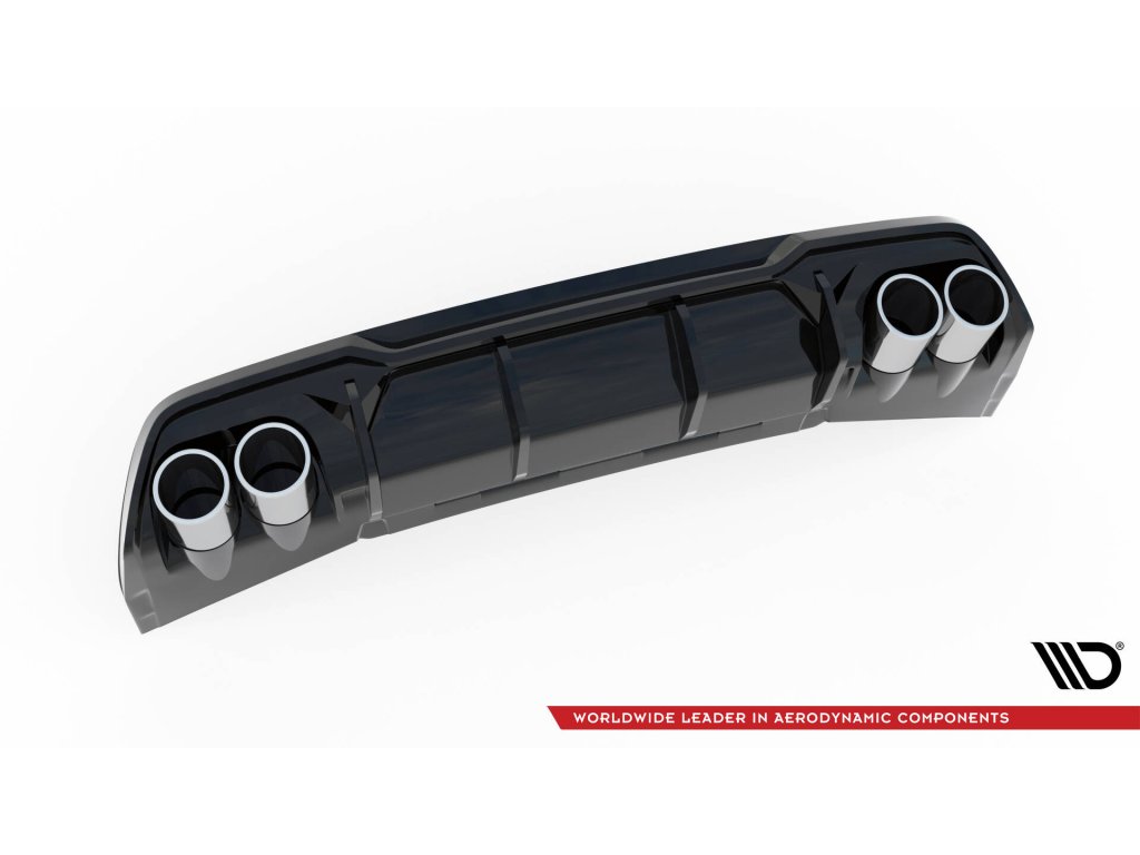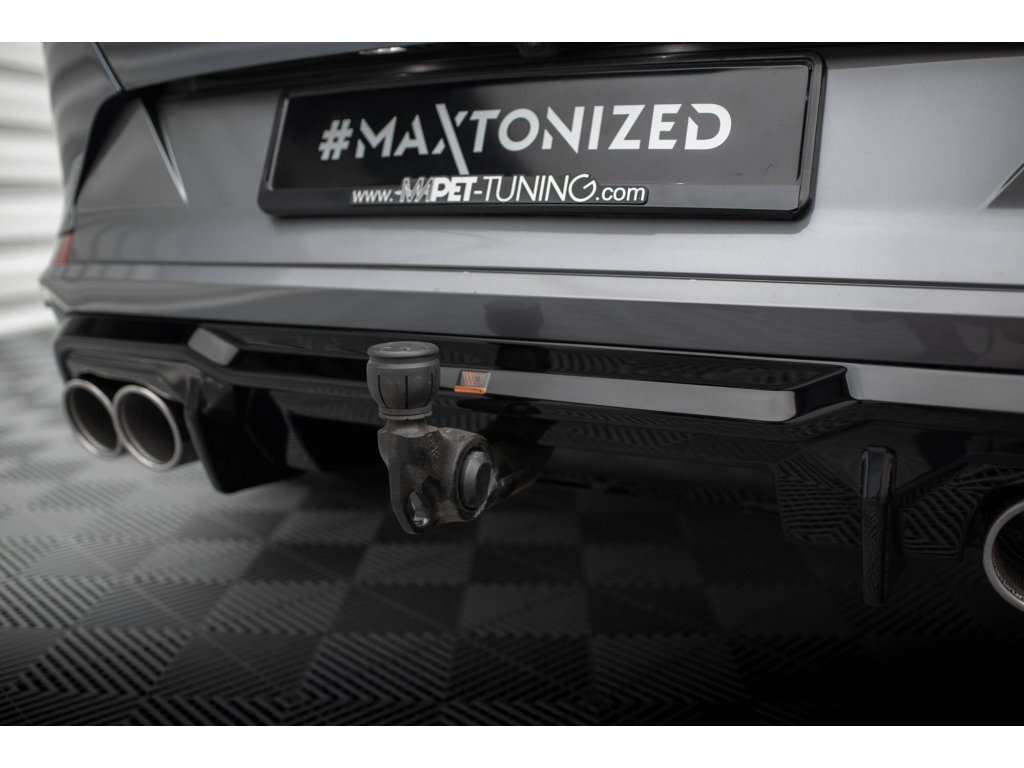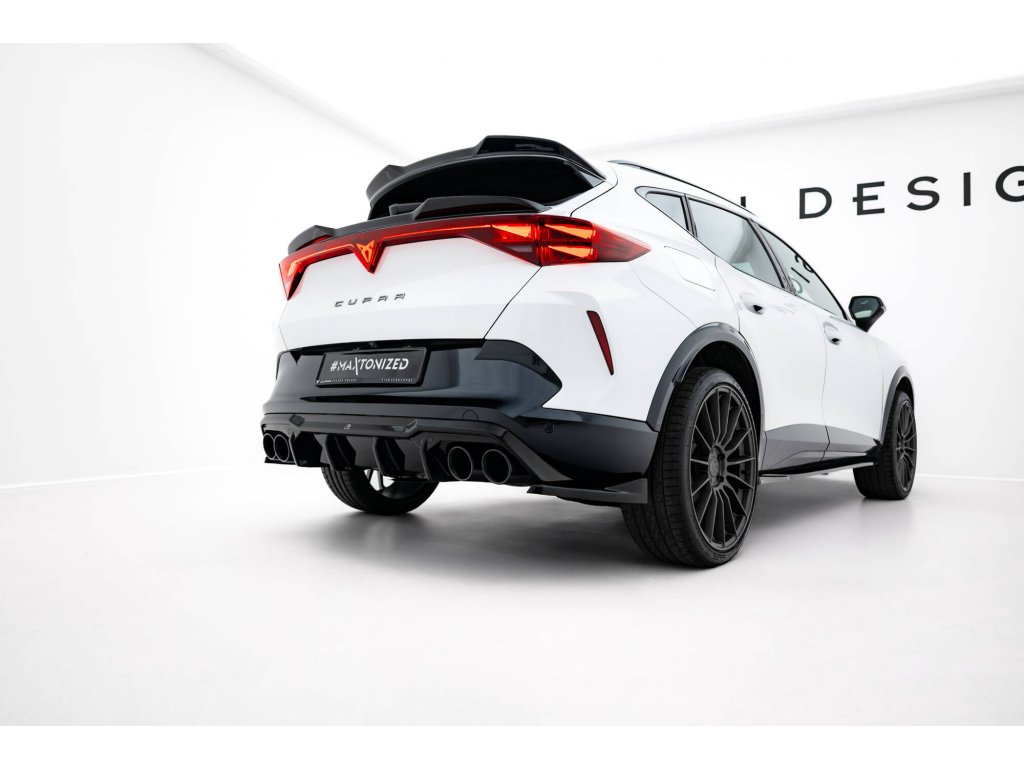 Maxton Design vložka zadního nárazníku ver.3 s imitacemi koncovek výfuku pro vozidlo Cupra Formentor Mk1 . Povrchová úprava spoileru černý lesklý plast ABS.