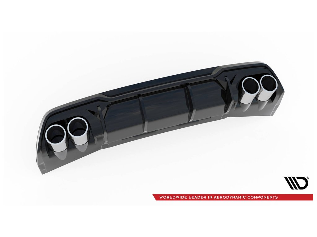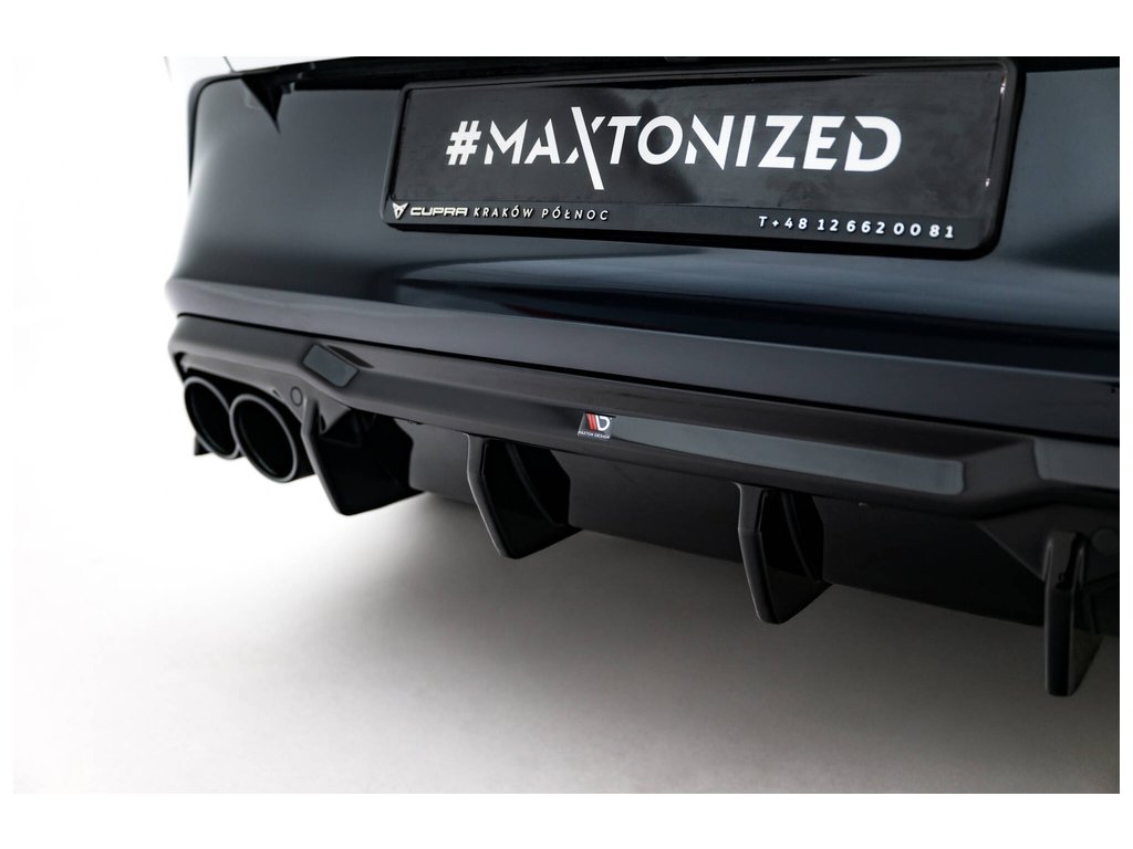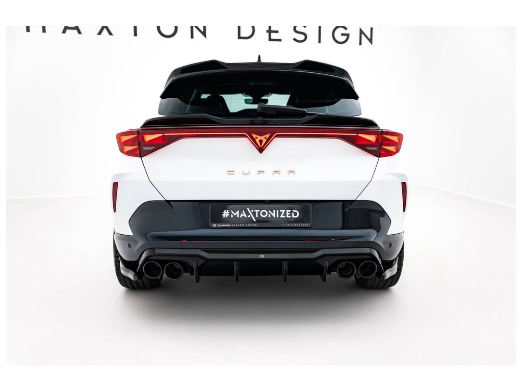 Maxton Design vložka zadního nárazníku ver.3 s imitacemi koncovek výfuku pro vozidlo Cupra Formentor Mk1 . Povrchová úprava spoileru černý lesklý plast ABS.