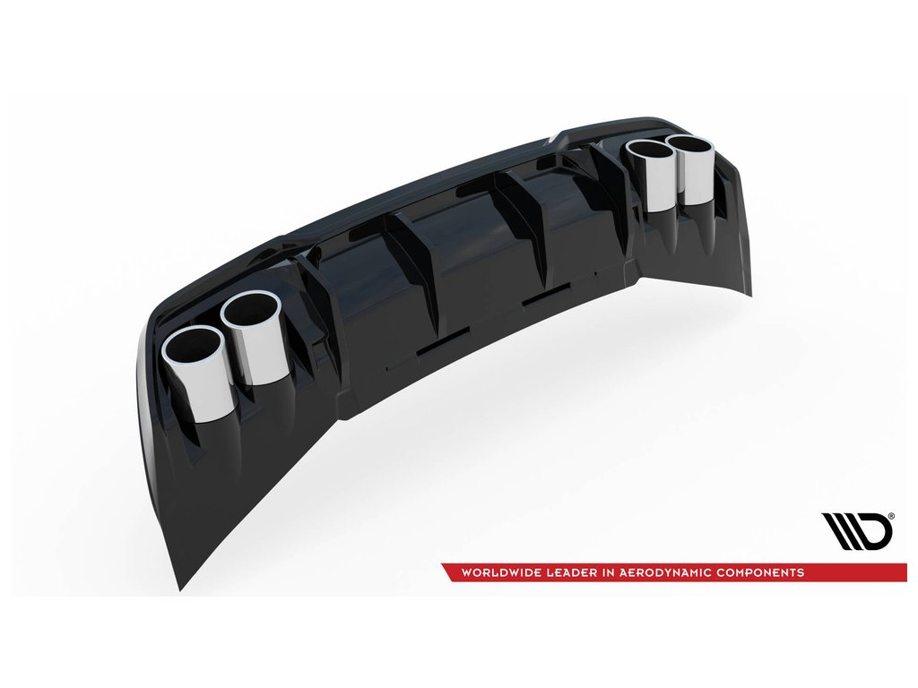 Maxton Design vložka zadního nárazníku ver.3 s imitacemi koncovek výfuku pro Cupra Formentor Mk1, černý lesklý plast ABS, s chromovými koncovkami