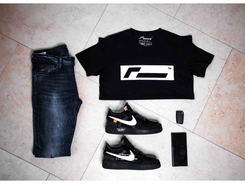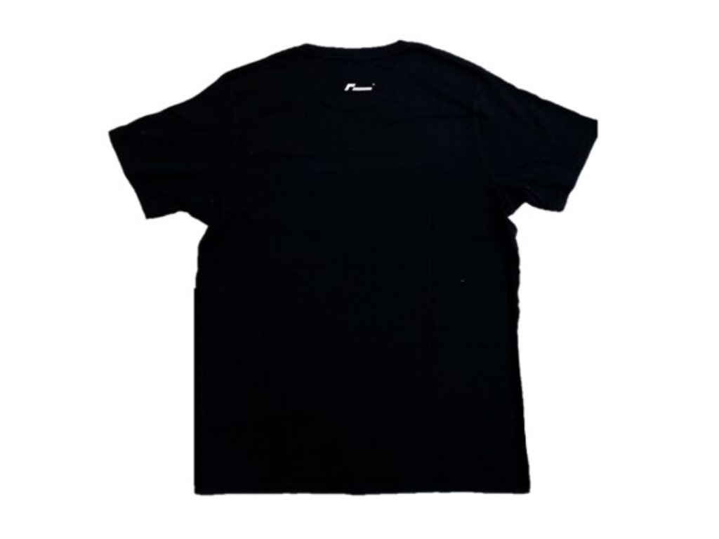 Originální unisex černé triko Racingline s velkým bílým logem v rámečku vpředu a malým logem na zádech.