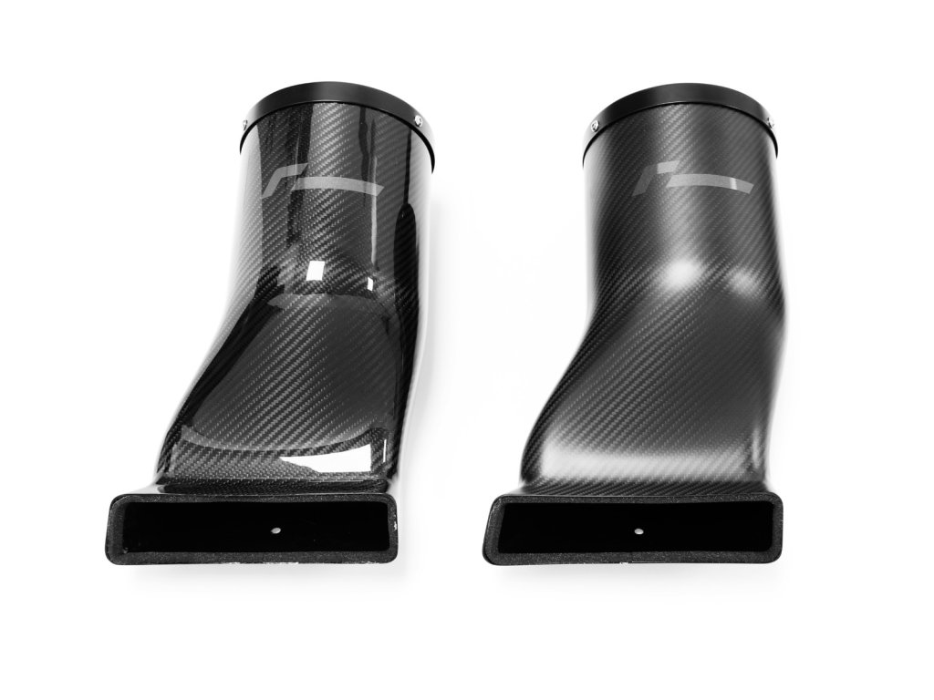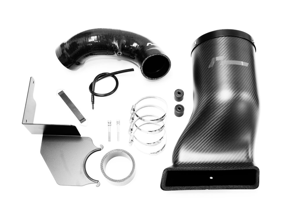 - Karbonový airbox tvoří jeden díl spolu s nasávačem od chladičové stěny a je vyrobený 100% z 3K twill karbonové tkaniny. Díky tomu je vedení vzduchu zcela bez překážek a restrikcí a zároveň je celé vedení vzduchu utěsněno proti pronikání vysokých teplot do sání.