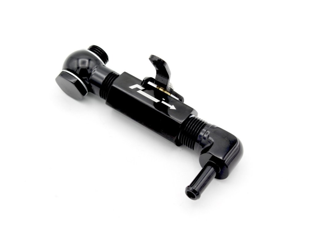 Racingline Oil management kit potřebuje pravidelné vyprázdnění nádobky na zachytávaný olej a vlhkost. Tento proces se výrazně usnadní použitím vypouštěcího kitu Racingline.