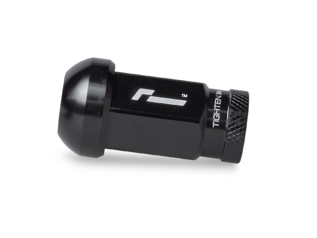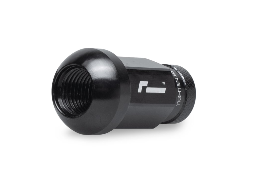 Náhradní kolová matice Racingline M14x1,5 pro použití na kolové štefty. Černá s logem Racingline.