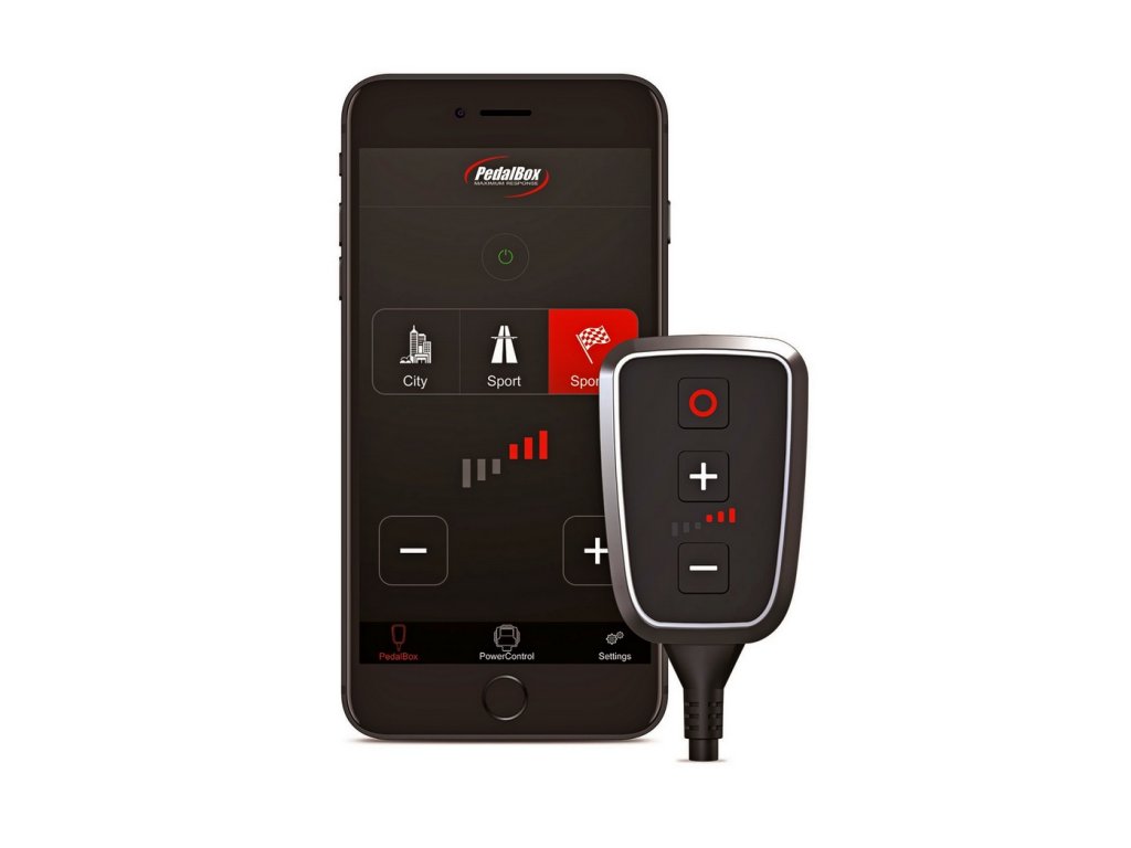 Verze PedalBox+ s mobilní aplikací umožňuje pohodlné nastavení přímo z telefonu a propojení s jednotkou PowerControl (pokud je instalována).