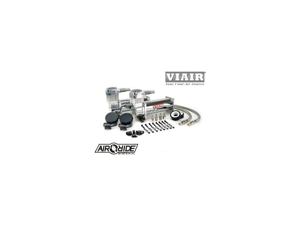 Vzduchové kompresory VIAIR 444C Dual Performance Value Pack se vyznačují nově vyvinutou hlavou s mezichladičem, na kterou je přihlášen patent, a jsou schopny dosáhnout maximálního tlaku 200 PSI se 100% pracovním cyklem pro napájení systému vzduchového odpružení nebo jakékoli jiné aplikace. Balíček 444C Dual Performance Value Pack obsahuje dva 12voltové chromované vzduchové kompresory VIAIR 444C, které jsou také vybaveny nerezovou opletenou vodicí hadicí s řadovým zpětným ventilem.