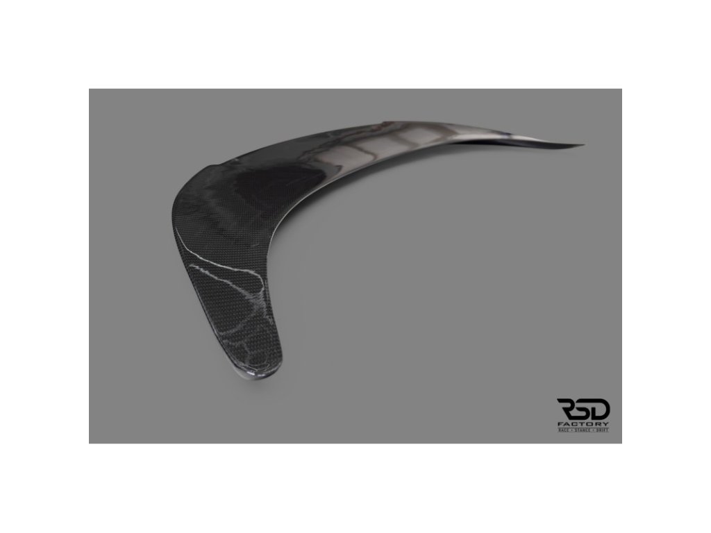 Spoiler z uhlíkových vláken. Produkt lakovaný do lesklého lesku.